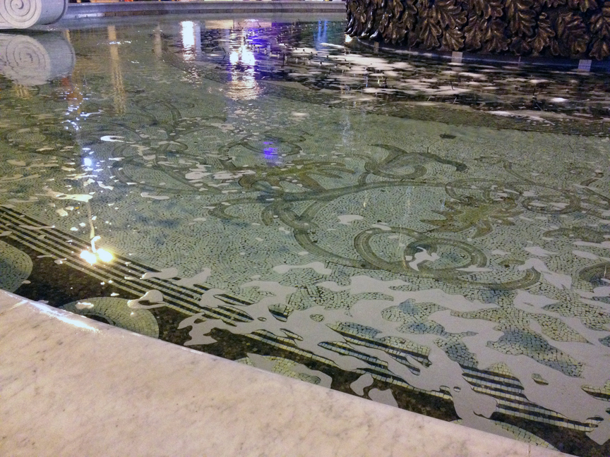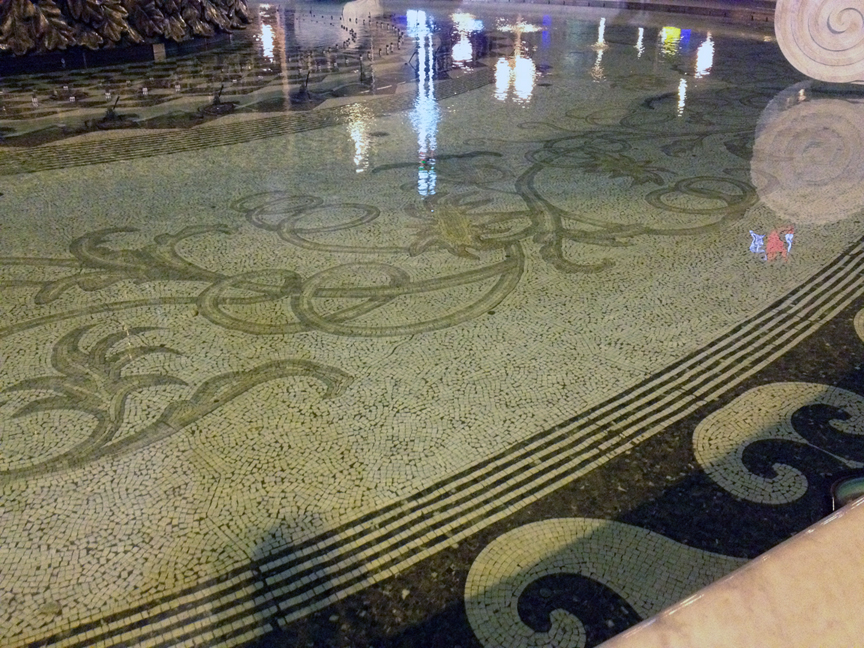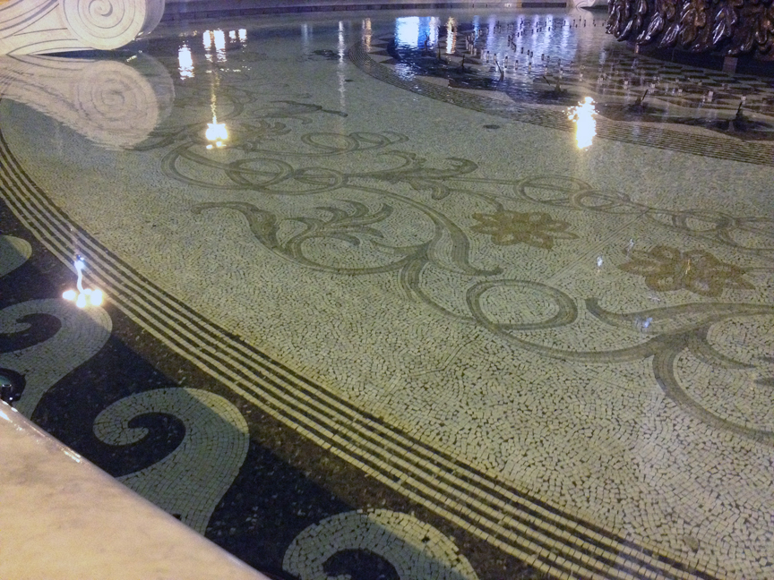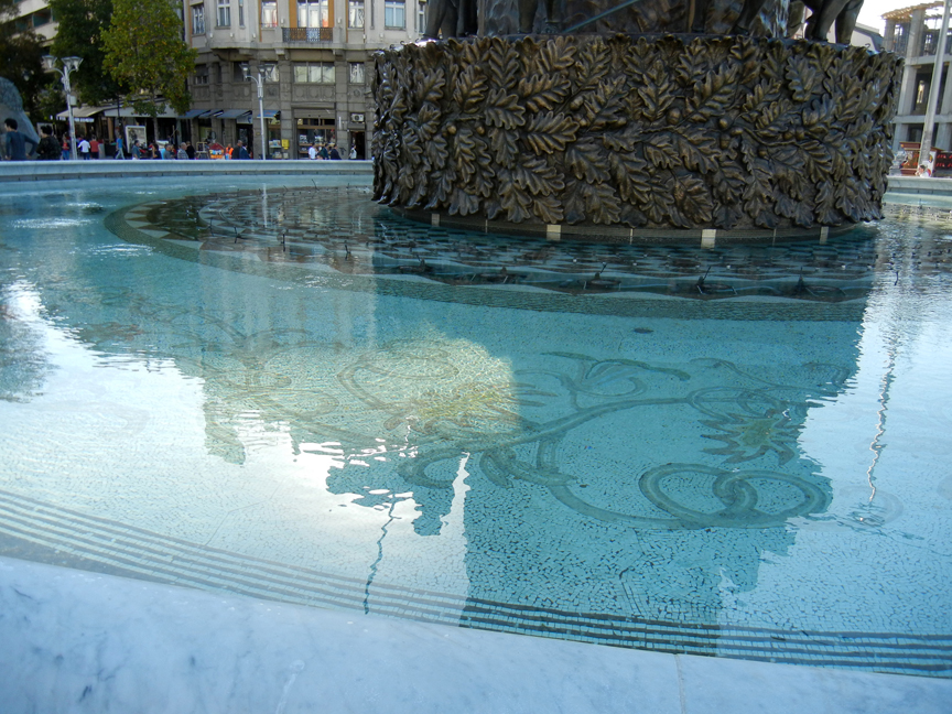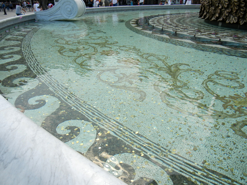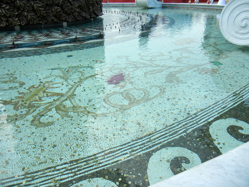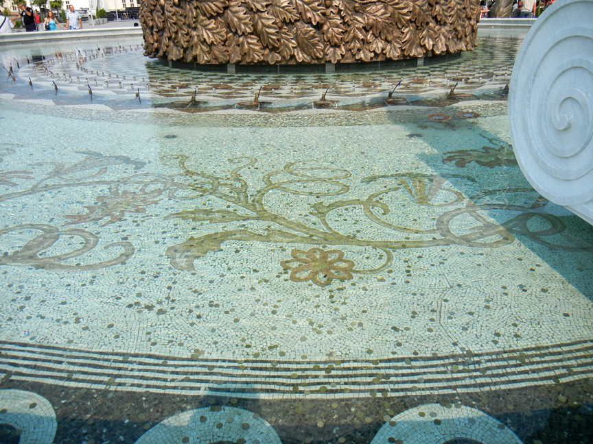 Ancient Macedonian Mosaic in the Alexander the Great Fountain At the pool base of the Alexander the Great fountain is a very large mosaic made after the typical ancient Macedonian scroll mosaics which are found not only in ancient Macedonia, but throughout the Macedonian Empire including Egypt, Syria, and Asia Minor. Below is a picture gallery of the mosaic.
